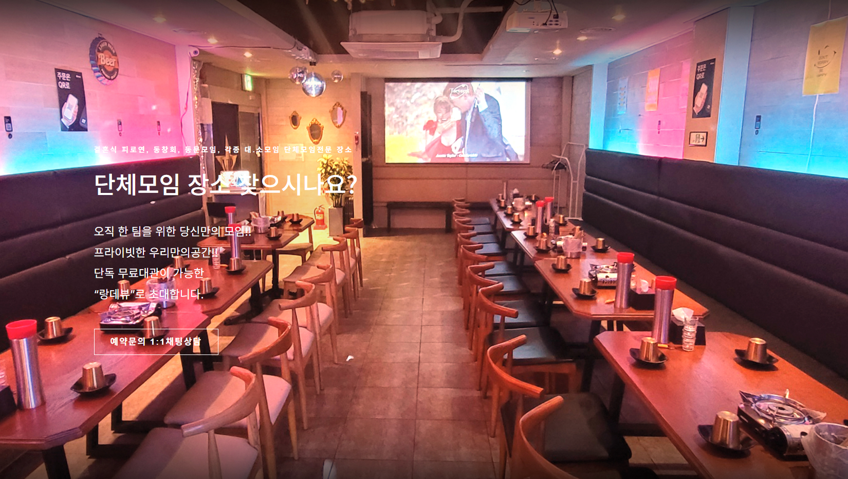 - 랑데뷰는 단체 모임, 회식, 피로연, 동창회, 송년·신년회 등 다양한 이벤트에 최적화된 공간입니다.