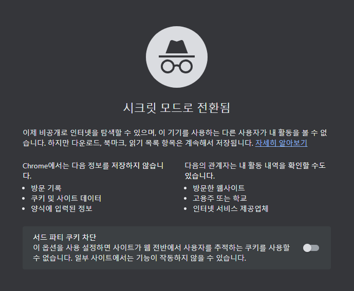 시크릿 모드 > 콘 + 시 + N